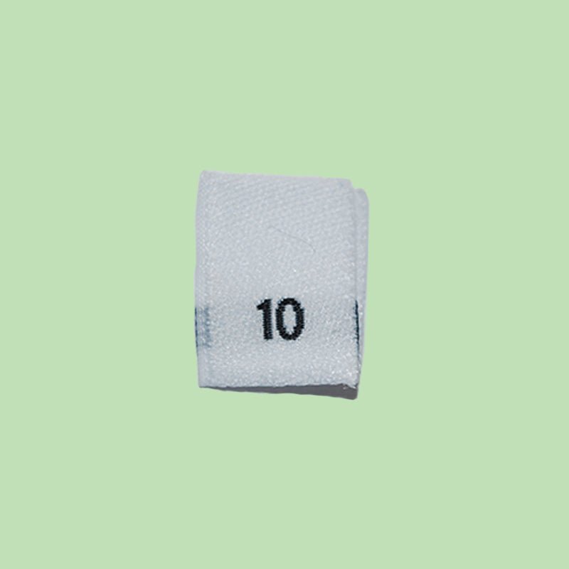 Enhance your products with our White Numbered Size Labels. Pre-cut, folded, and perfectly sized for seam-attachment; made with 100% damask woven polyester.